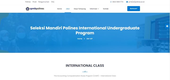 Polines, Dimensi (14/08) ― Politeknik Negeri Semarang (Polines) resmi membuka jalur seleksi mandiri kelas internasional bagi mahasiswa baru yang disebut Seleksi Mandiri–International Undergraduate Program (SM-IUP). Seleksi mandiri ini dibuka hingga tanggal 20 Agustus mendatang....